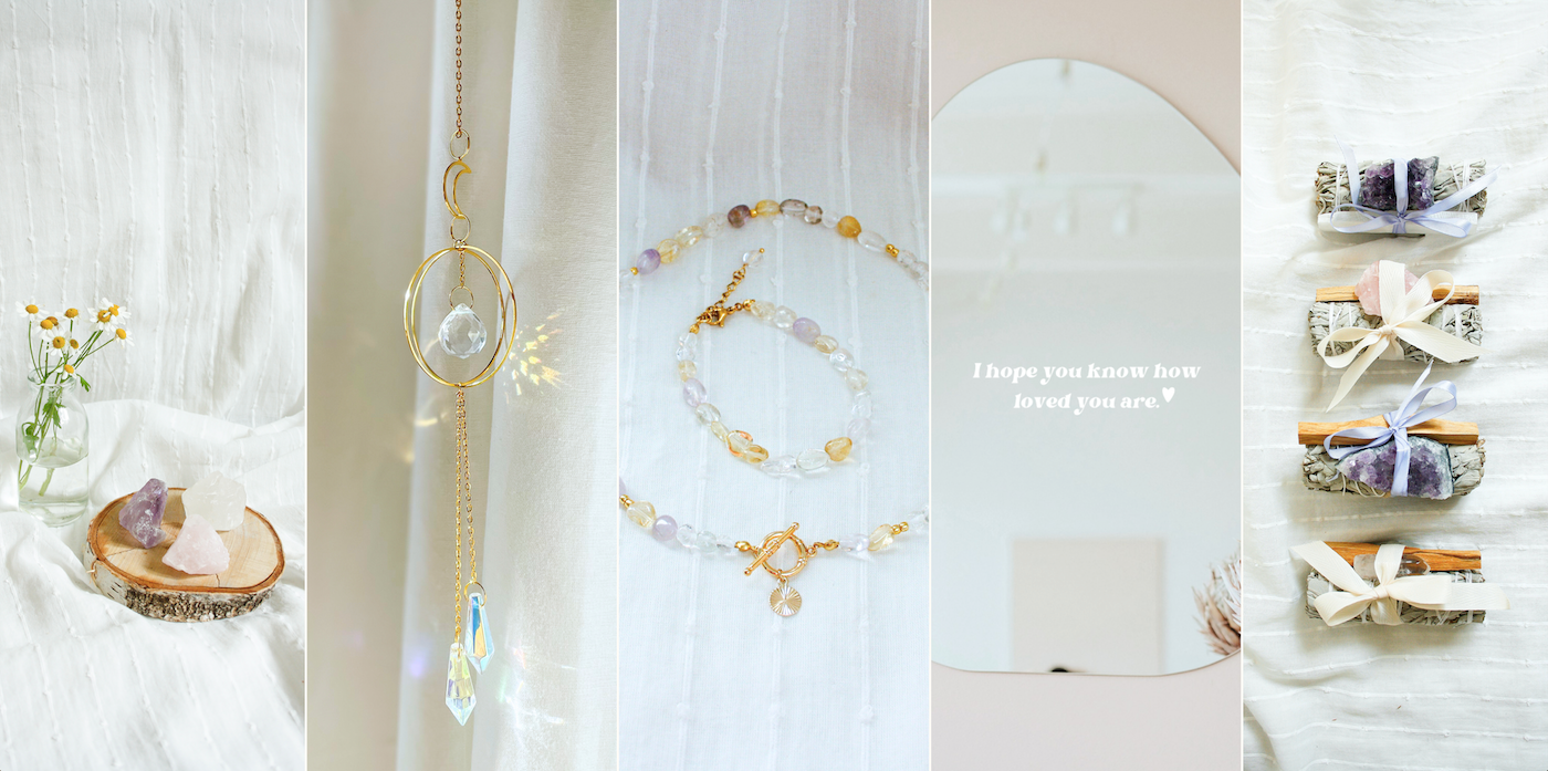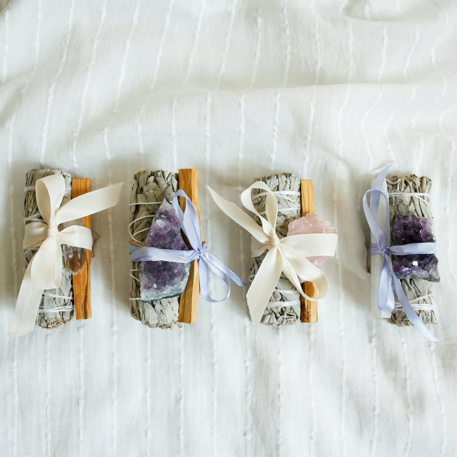 Du möchtest dir selbst oder deinen Liebsten eine Freude machen? Unsere Räucherwerk-Sets mit echten Edelsteinen sind die perfekten Begleiter beim Yoga, Meditieren, Journaling und überall dort, wo sie dich unterstützen dürfen. Befreie dich jetzt von negativen Energien und starte in dein achtsameres Leben. Selfcare kann so schön sein. ☺